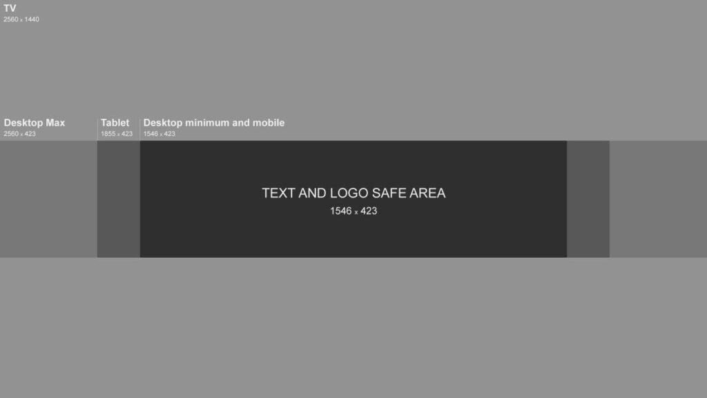 Sizes and Requirements: The optimal banner size is 2560×1440 pixels. It’s important to note that the safe viewing area, where all important details will be clearly visible, is 1546×423 pixels. This means that the main information and design elements should be placed in the center.